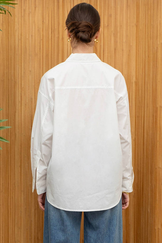 RELAXED BUTTON DOWN LONG SLEEVE SHIRT: WHITE