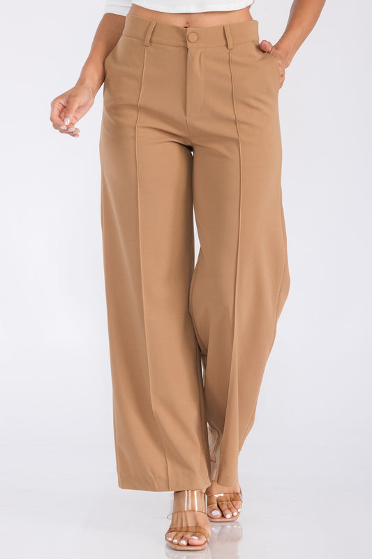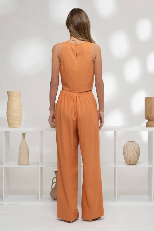 HIGH WAIST WIDE LEG DRESS PANTS: DUSTY ORANGE