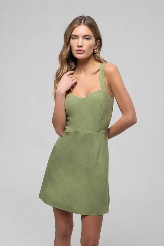SWEETHEART NECK SLEEVELESS MINI DRESS: GREEN